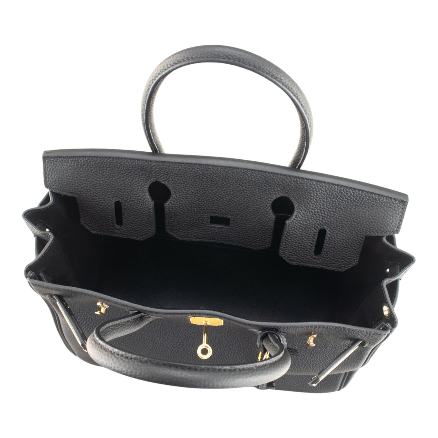 El Bolso de mano Pregato Verona Gold Negro es un básico atemporal que nunca pasa de moda, de tamaño mediano completo, tiene asa doble para llevar de mano y incluye cinta bandolera para que puedas llevarlo al hombro.