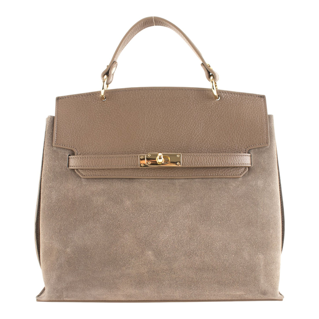 Bolso bombonera en Piel Pregato Ayra Ante Taupe