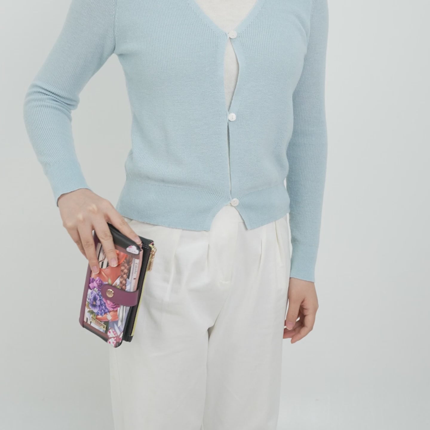 El Billetero Touch Nikky Nostalgia es un accesorio práctico y elegante, diseñado para mantener todo lo esencial bien organizado. Con espacio para tarjetas, billetes y monedas, incorpora tecnología de protección RFID que resguarda tu información personal. Su diseño artístico característico de la colección se combina con acabados en piel vegana y herrajes dorados, logrando un estilo sofisticado. Además, cuenta con compartimento de cremallera y cierre con broche para mayor seguridad.