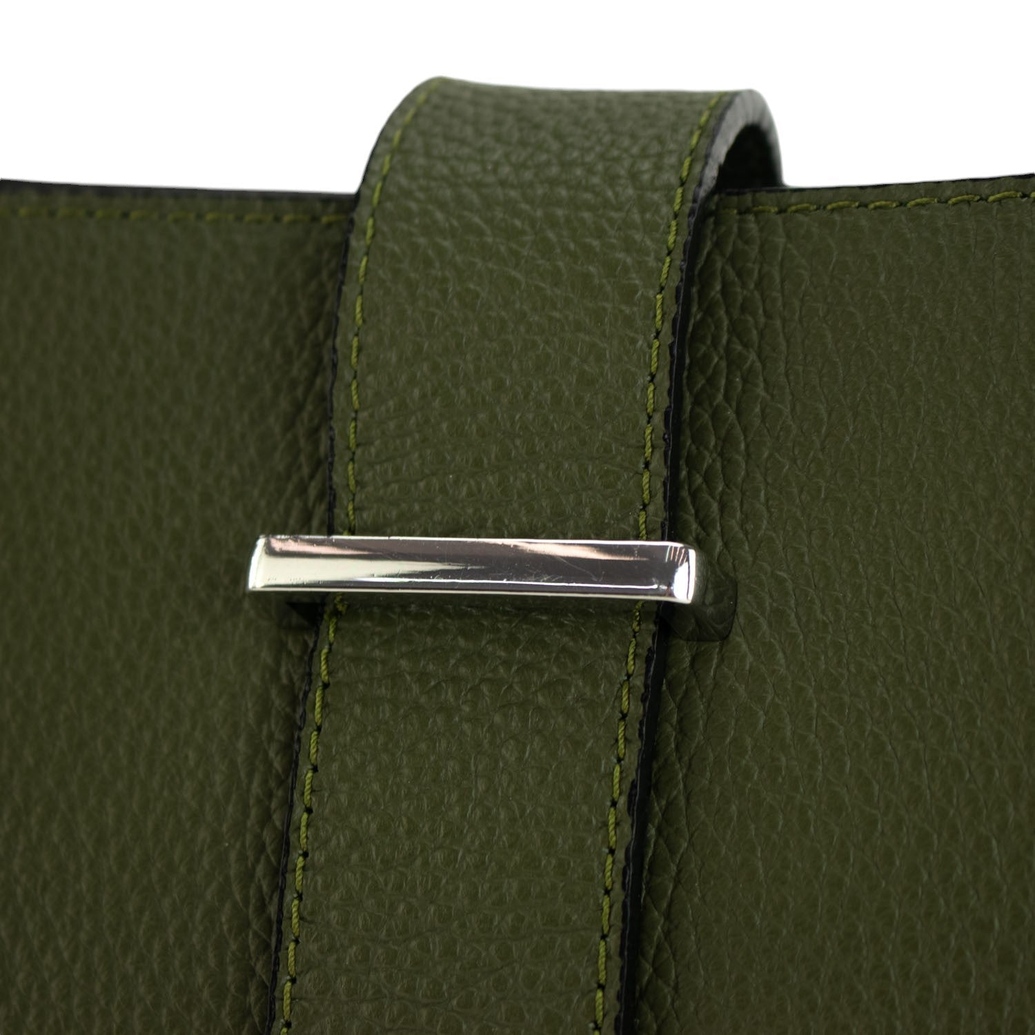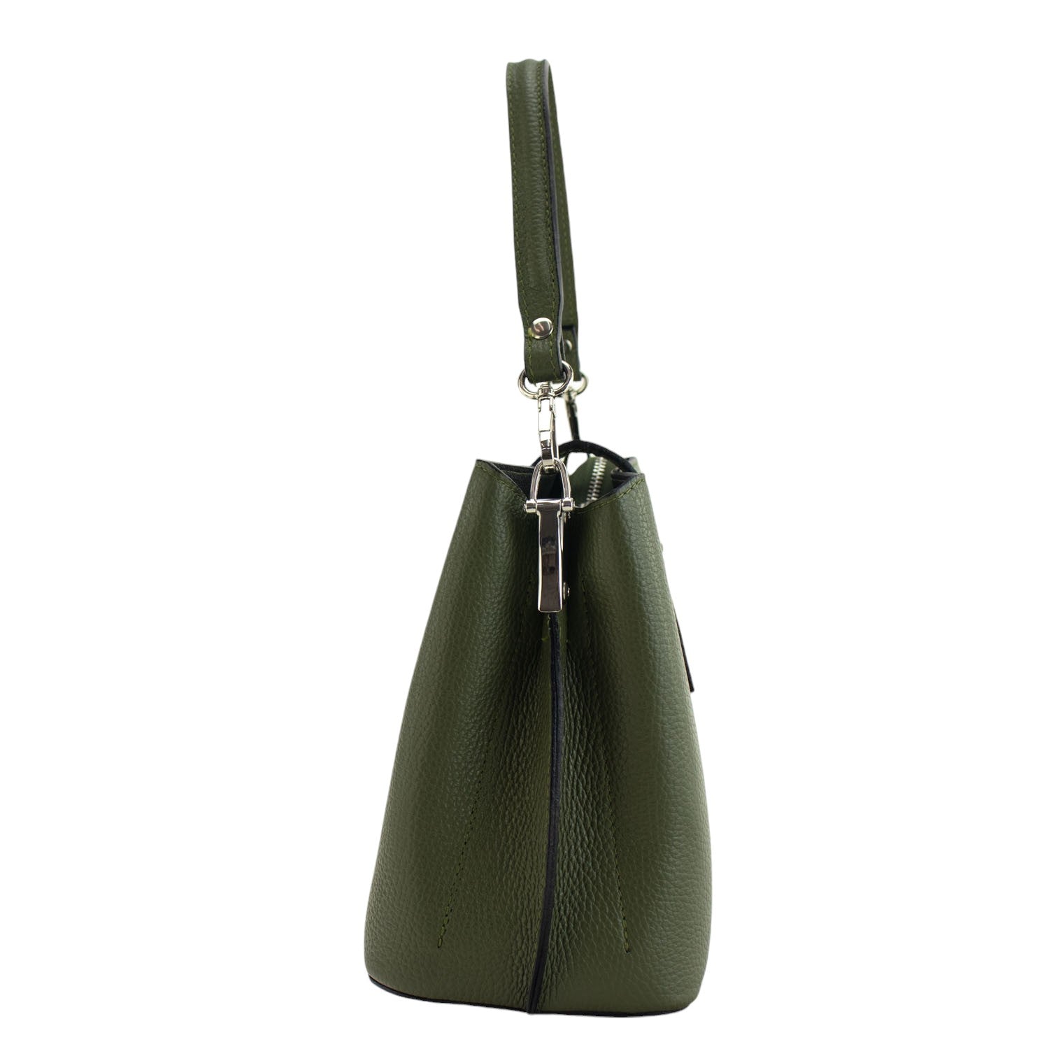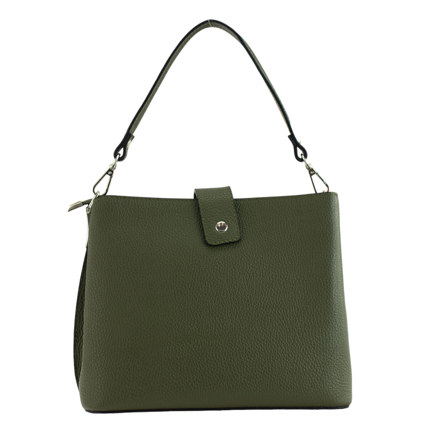 Un bolso muy original para lucir a diario, realizado en Piel 100% genuina vacuno italiana, este bolso está hecho en Italia con una excelente manufactura y calidad, tiene un cierre de broche muy original, con doble compartimento interior amplio con cierre de cremallera. Dispone de asa mano y cinta de bandolera.