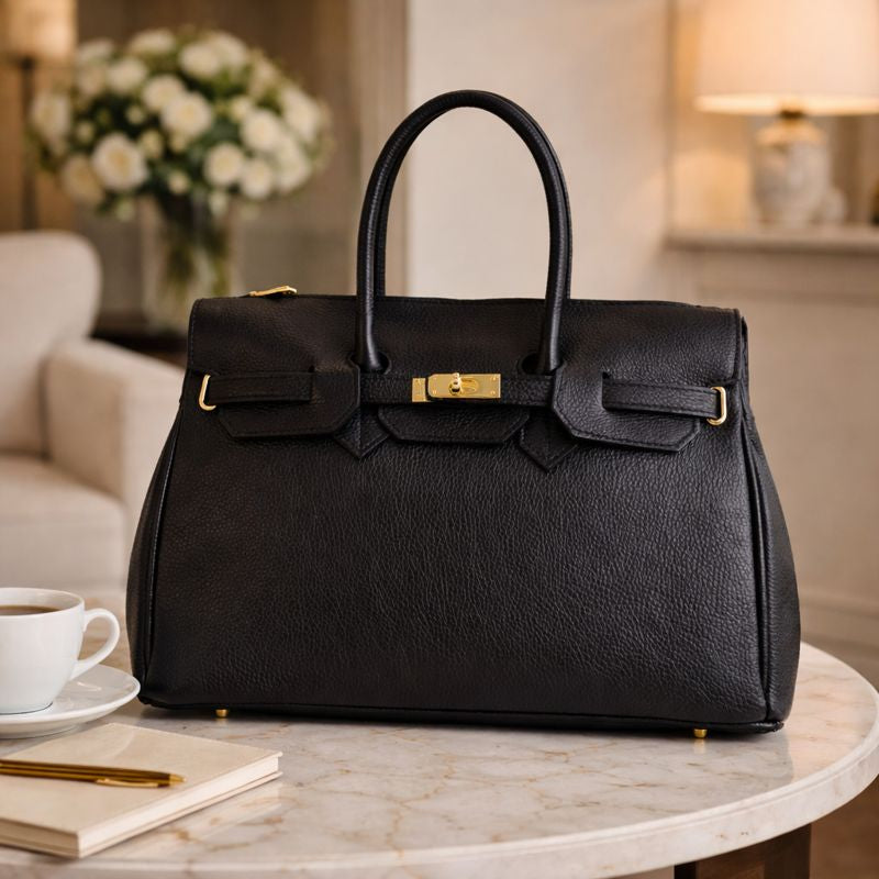 Un bolso muy original para lucir a diario, realizado en Piel 100% genuina vacuno italiana, este bolso está hecho en Italia con una excelente manufactura y calidad, tiene un compartimento interior amplio y cierre de broche además de un cierre superior con cremallera para facilitar el acceso al compartimento principal. Dispone de cómodas asas para llevar de mano.