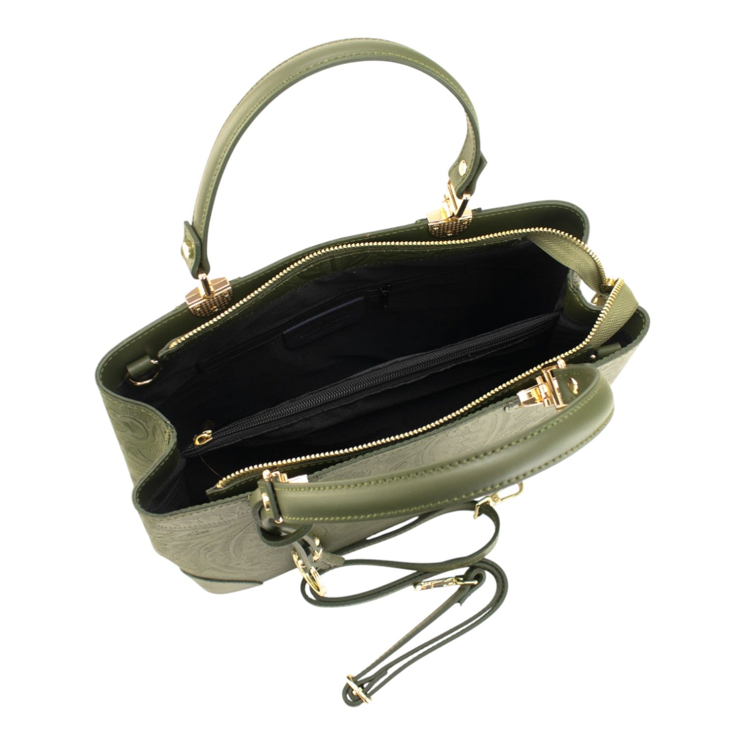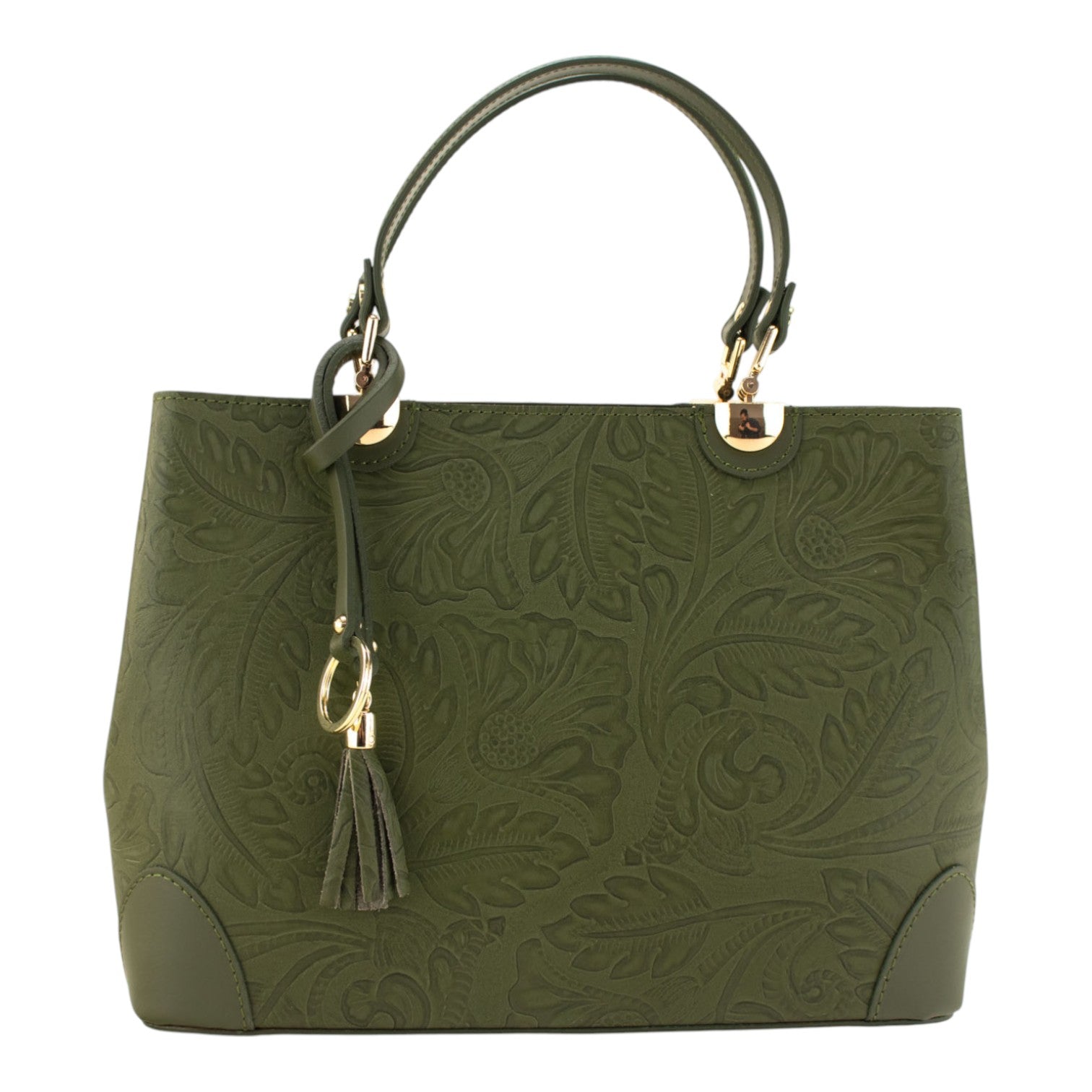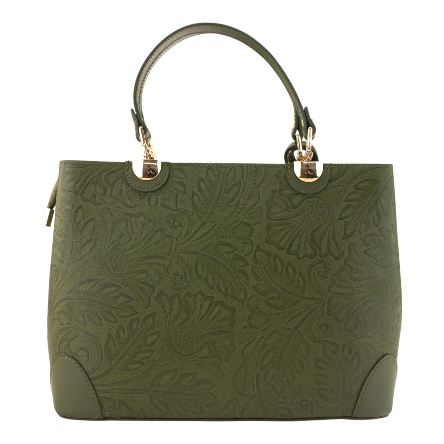 Bolso en piel Pregato Eleganza Grabado Verde oliva