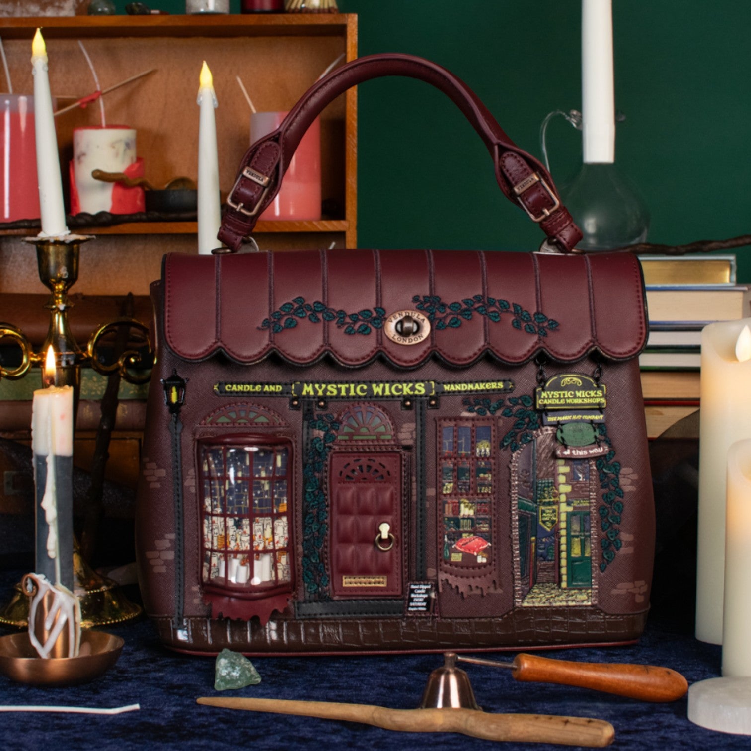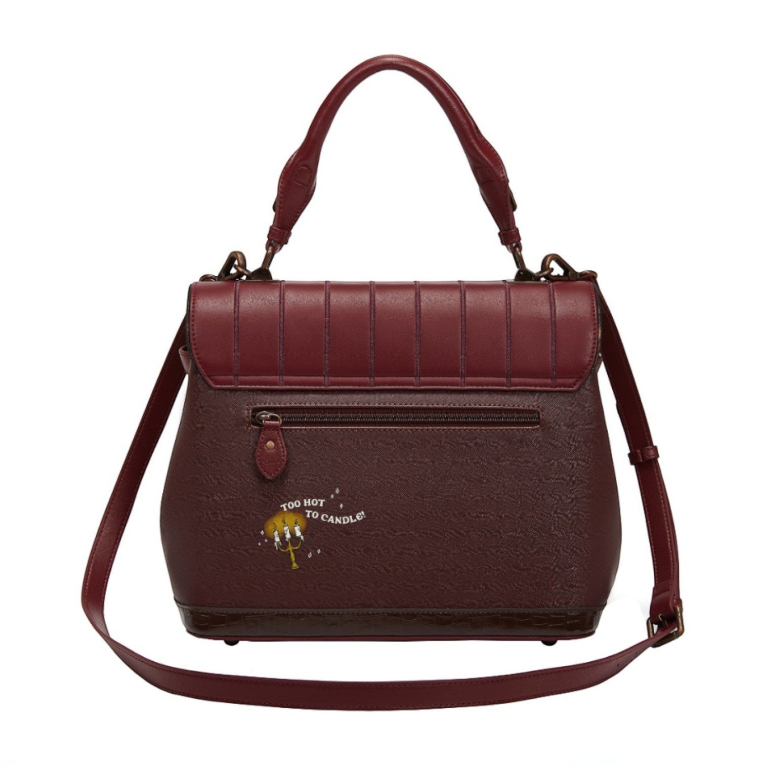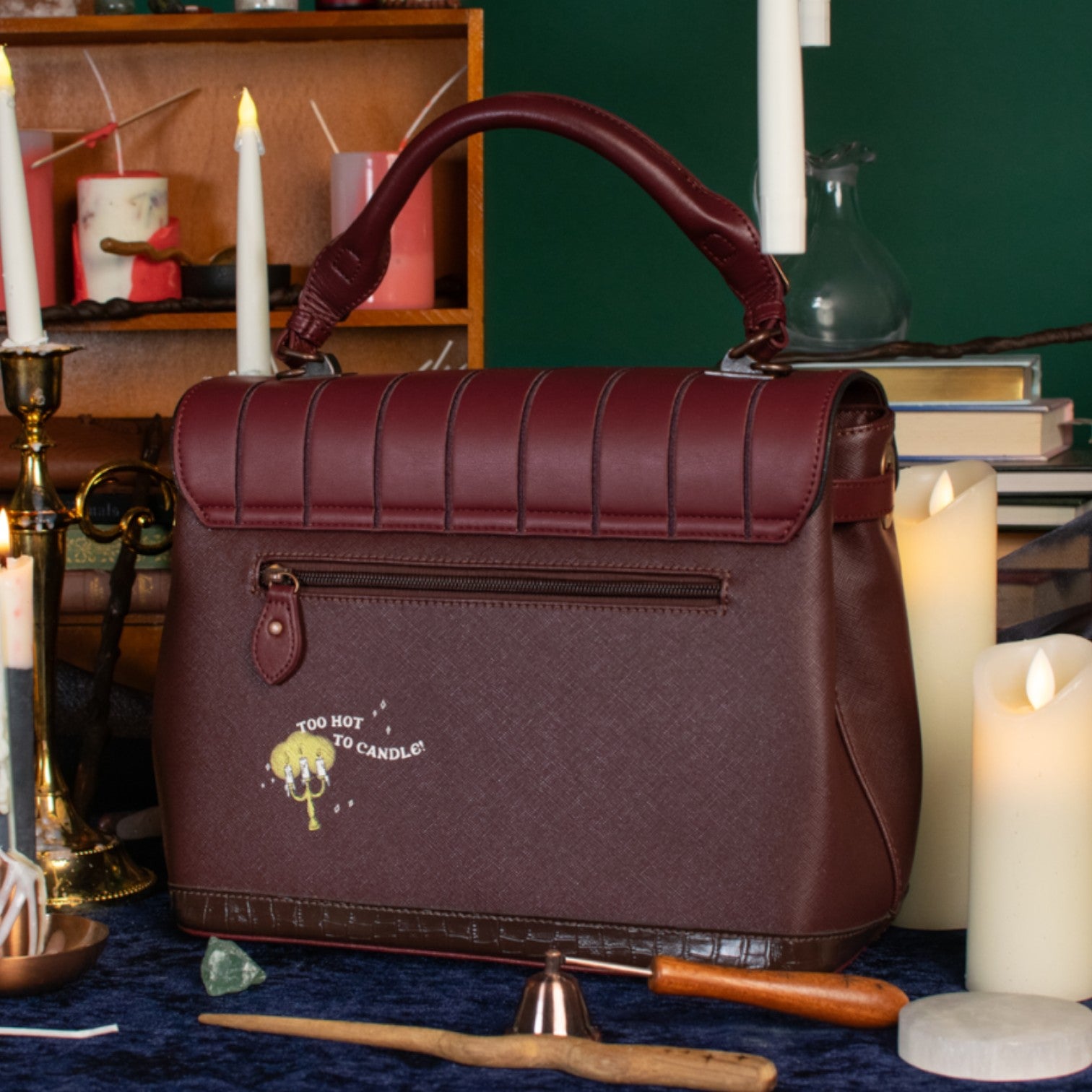 Un bolso que te enamorará nada más tenerlo, está repleto de detalles combinando tonos burdeos inspirado en las tiendas de velas, mechas místicas y varitas, viene con detalles en relieve y bordados que lo hacen único , tiene apertura con cierre de solapa con broche y cremallera, además de cinta regulable.