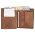 A very complete men's leather wallet with a vertical layout and multiple pockets and compartments. It has space for cards, bills and coins separately. Made of 100% Leather. Includes RFID technology to prevent card theft.