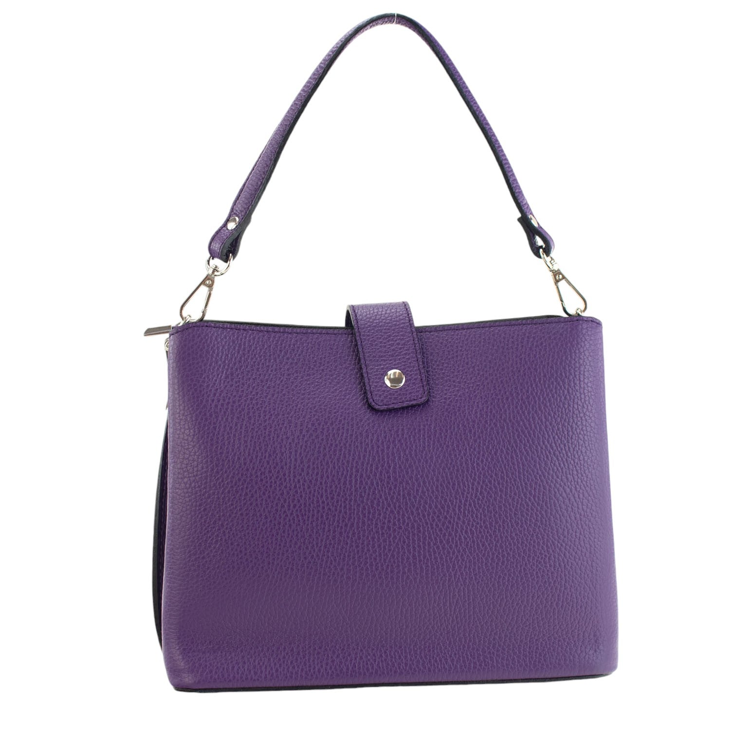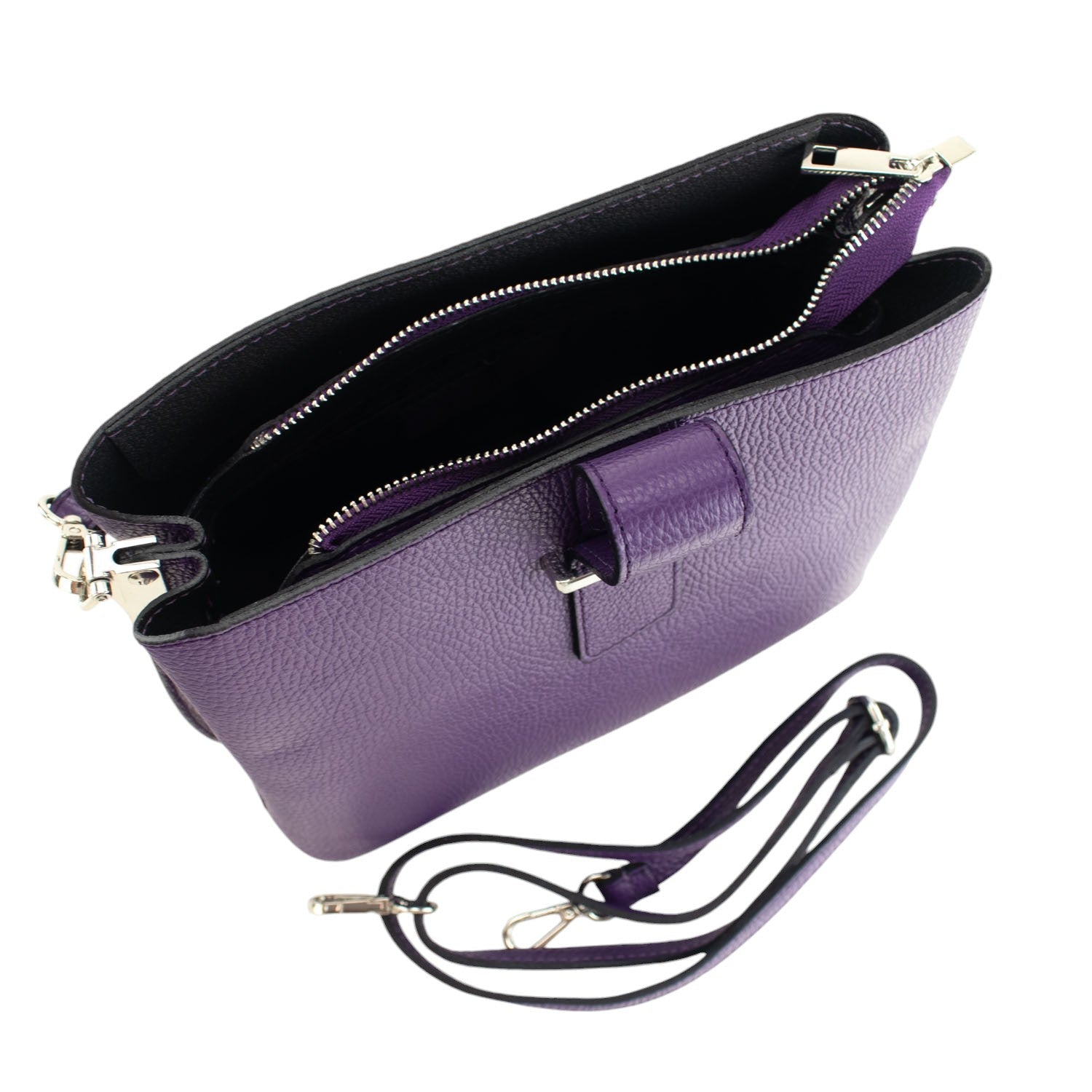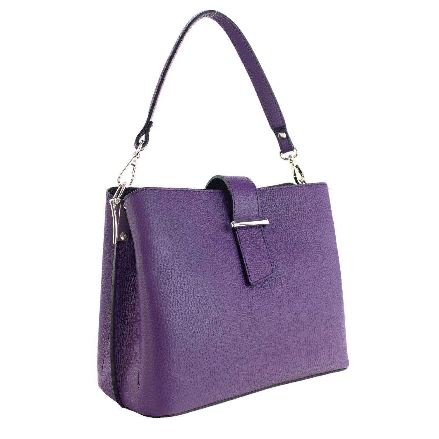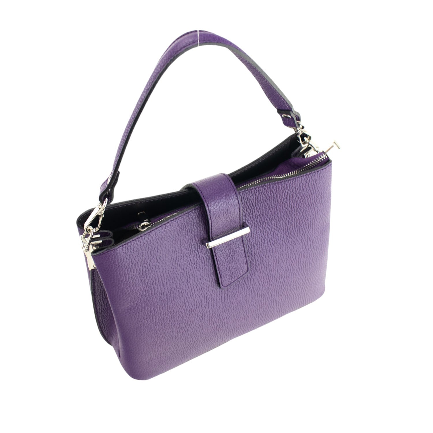 Un bolso muy original para lucir a diario, realizado en Piel 100% genuina vacuno italiana, este bolso está hecho en Italia con una excelente manufactura y calidad, tiene un cierre de broche muy original, con doble compartimento interior amplio con cierre de cremallera. Dispone de asa mano y cinta de bandolera.