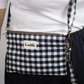 Bandolera pequeña La Matilda en cuadros Vichy que podrás llevar también como bolsito de mano clutch con el asa que incluye, tiene cierre de cremallera y es muy ligera ideal para llevar lo necesario