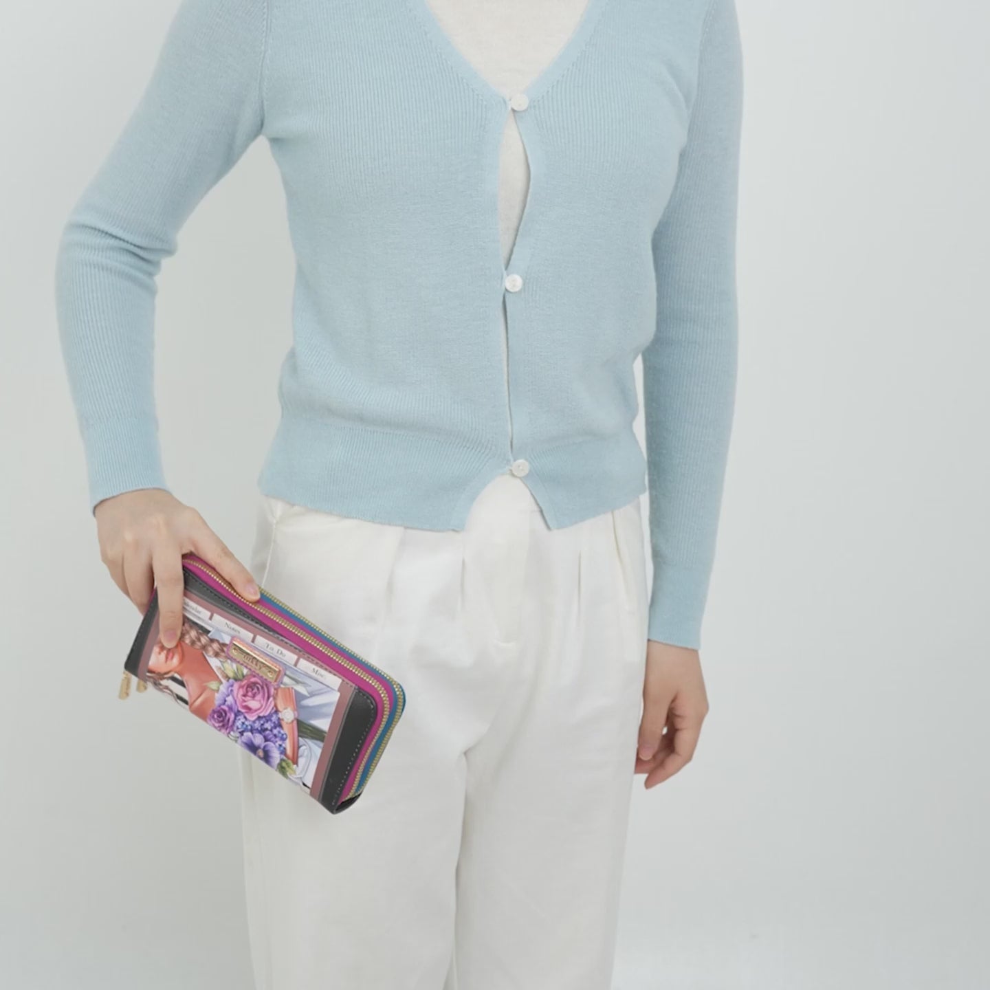El Billetero Grande Doble Nikky Nostalgia es la combinación perfecta entre organización, seguridad y estilo. Su diseño con dos compartimentos de cremallera permite mantener ordenados billetes, monedas y tarjetas de forma práctica, mientras que la tecnología de protección RFID protege tu información personal contra lecturas no autorizadas. Confeccionado en piel vegana y decorado con el característico diseño artístico de la colección, se convierte en un accesorio sofisticado y funcional para el día a día.