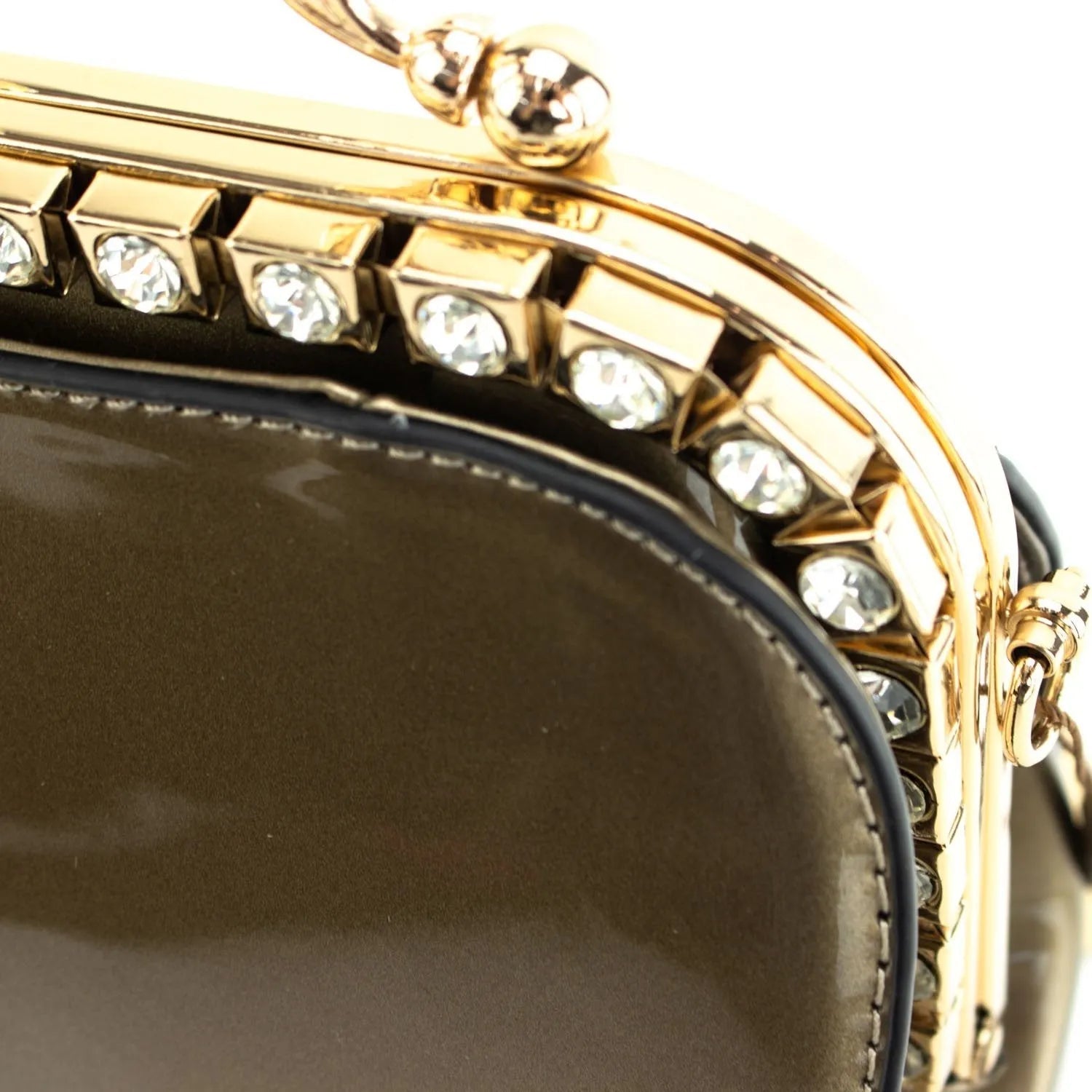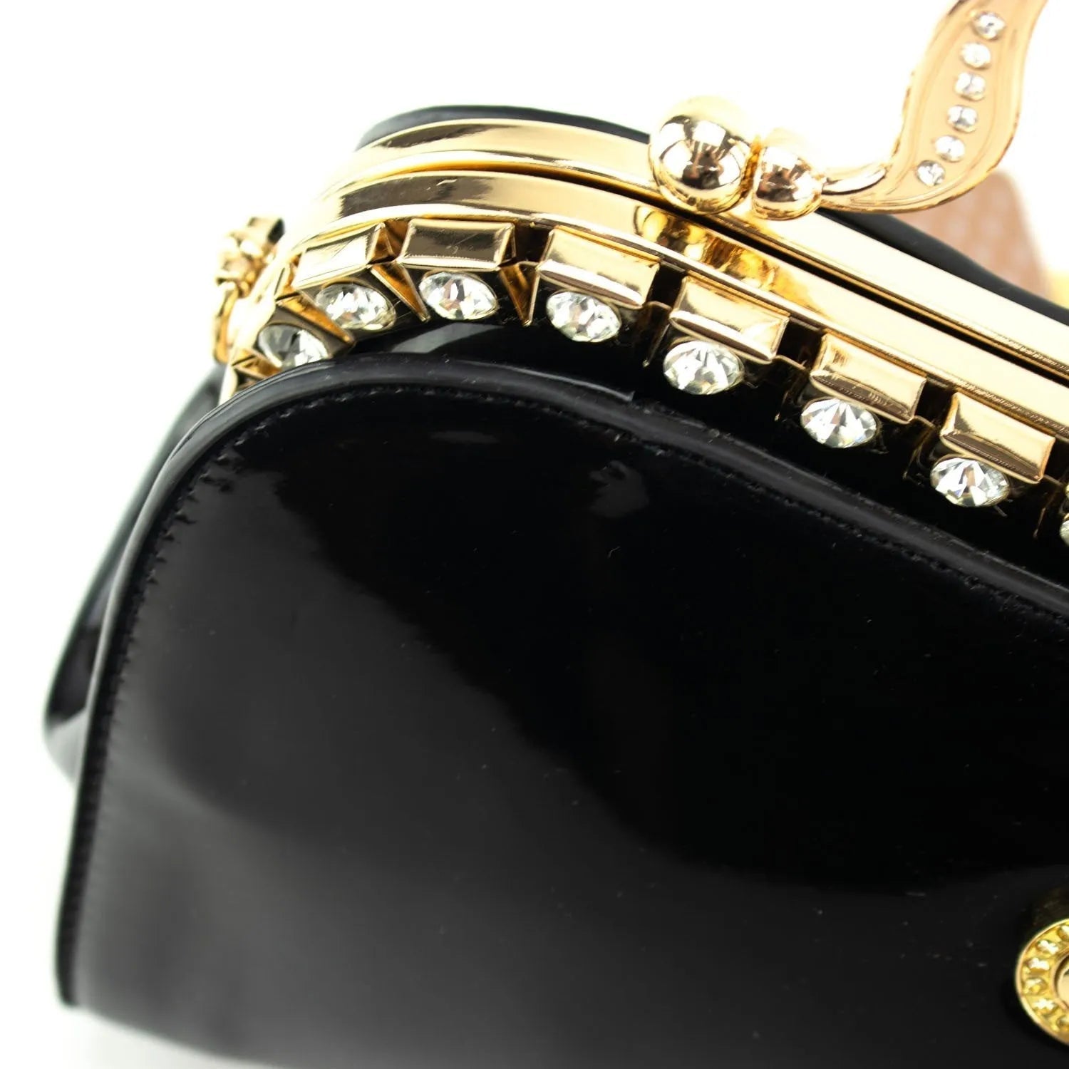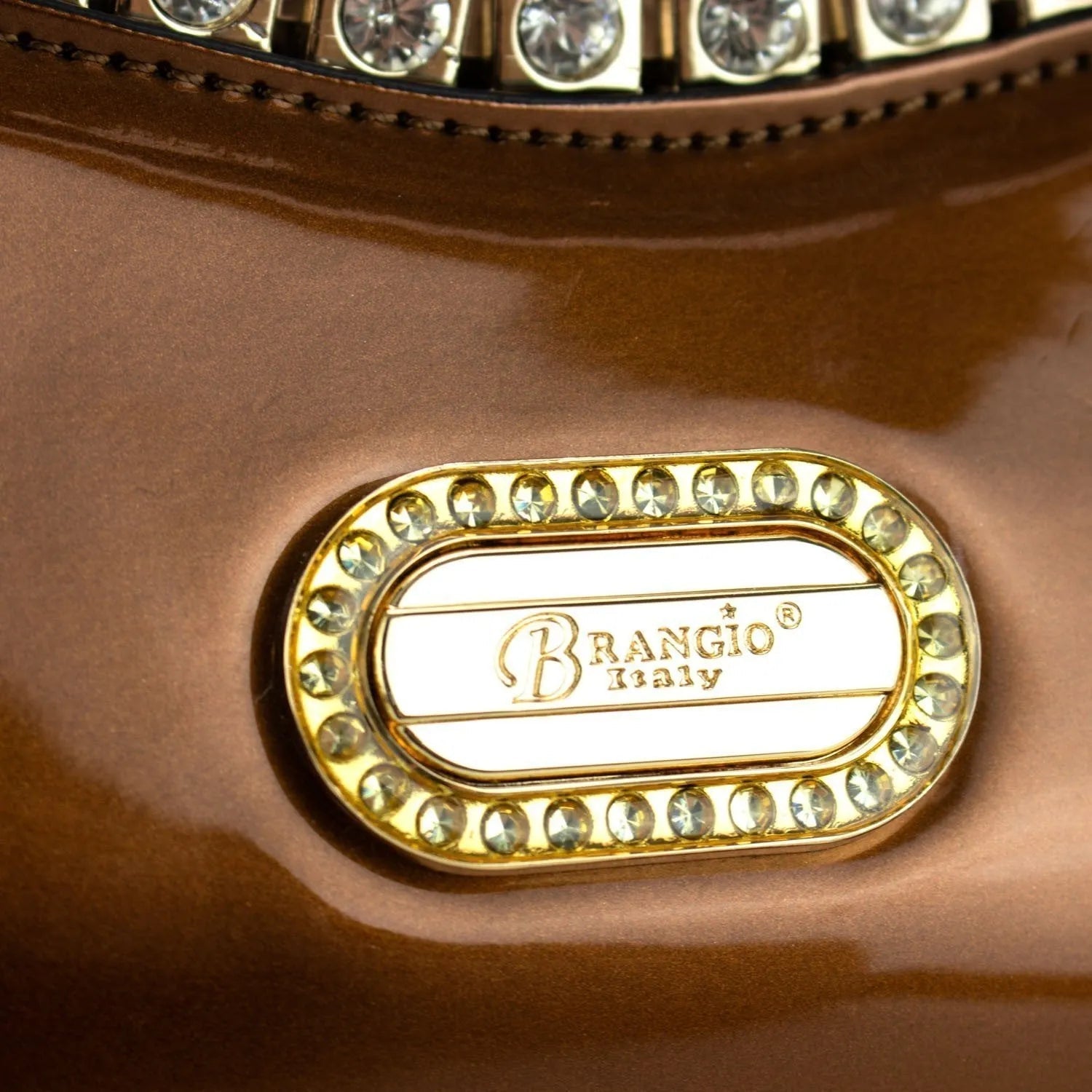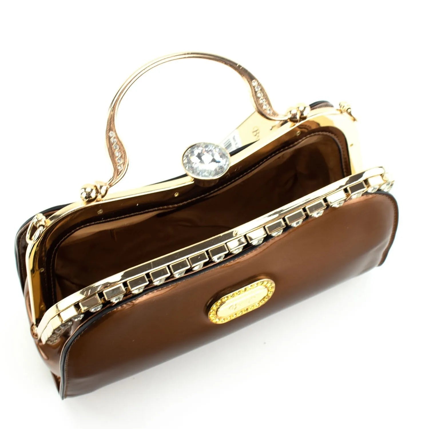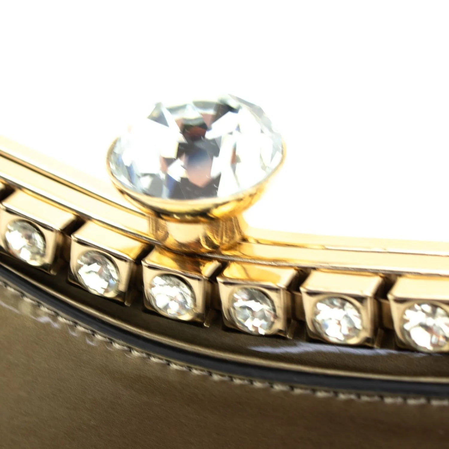 Un bolso super original estilo clutch que te enamorará anda más tenerlo en tus manos. Un bolso espectacular con asa de mano y cinta de bandolera en cadena metalizada. Con un compartimento interior amplio con cierre de broche espectacular. Acabado con tonos lisos en charol brillante y decorado con brillantes y apliques ¡Te encantará!