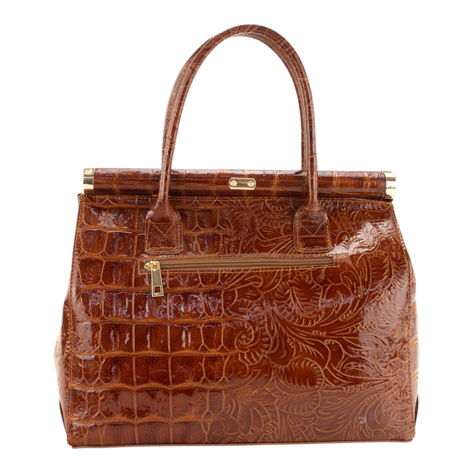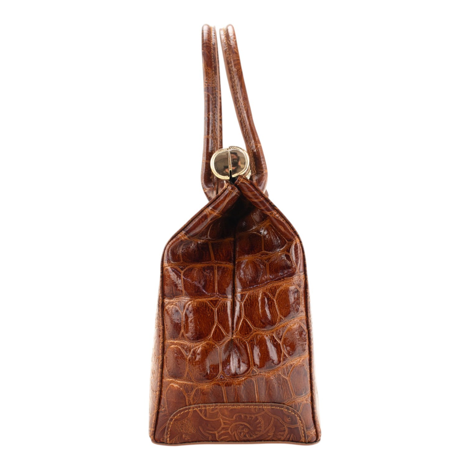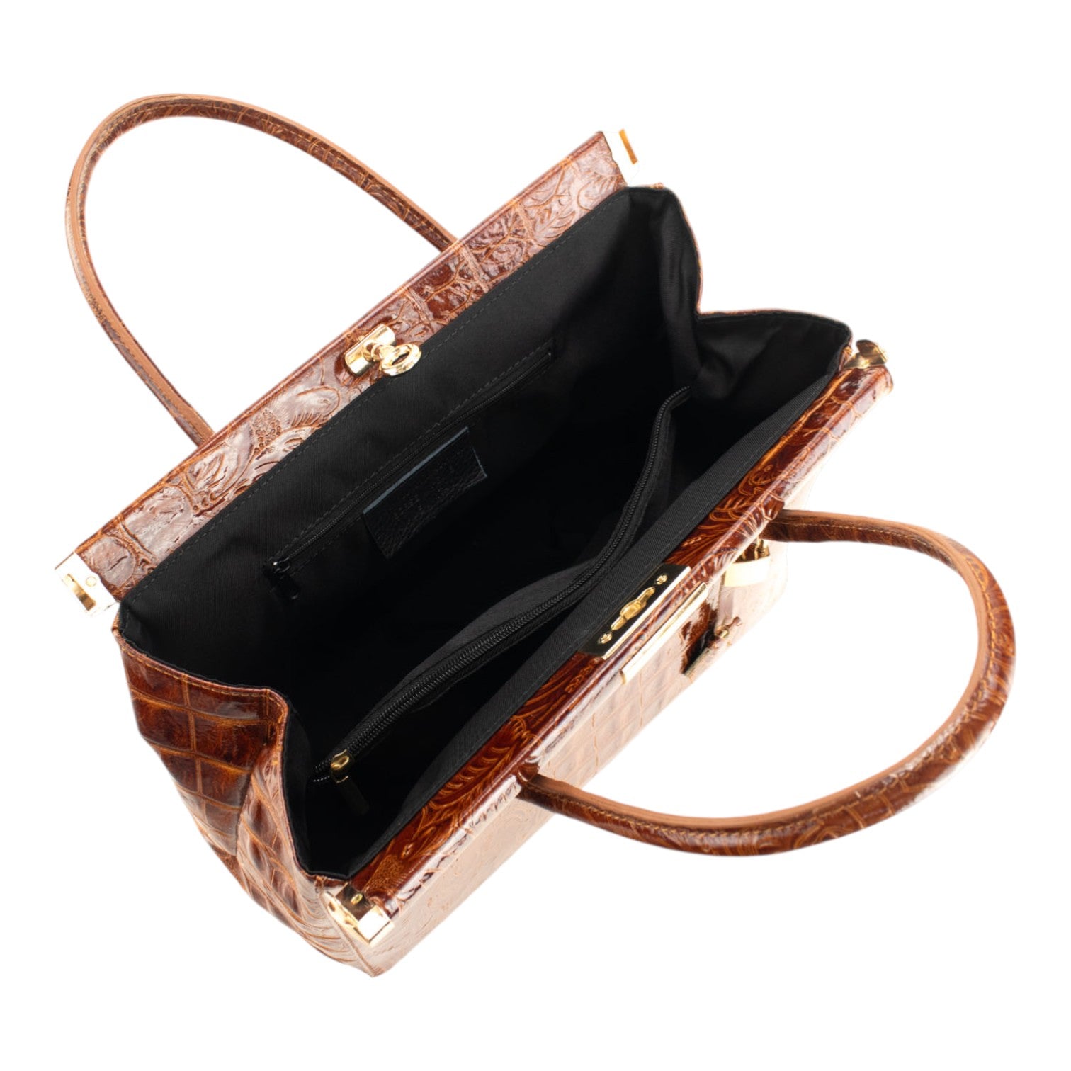 Bolso de mano en Piel Pregato Classic Special Croc Floral Camel