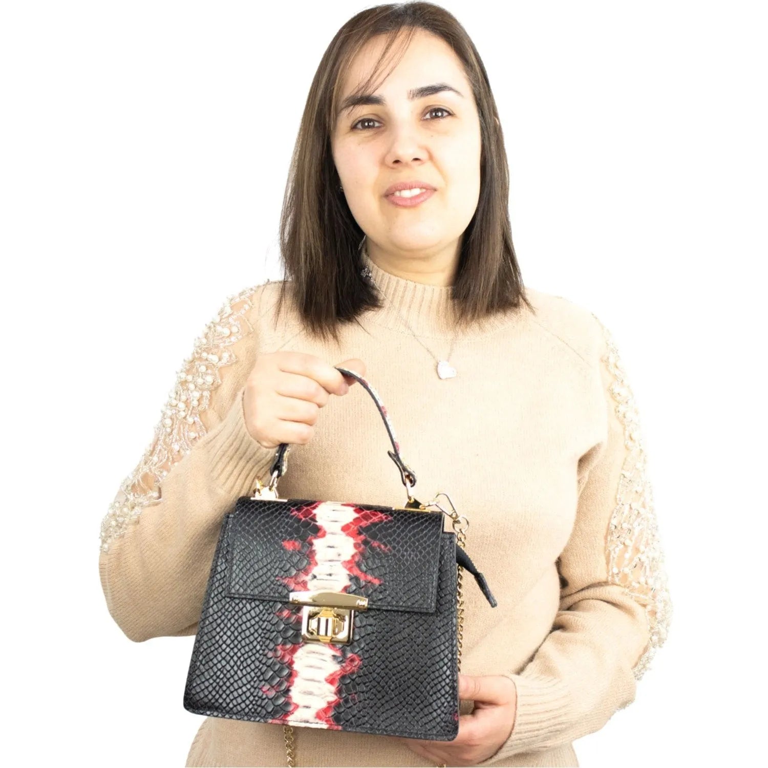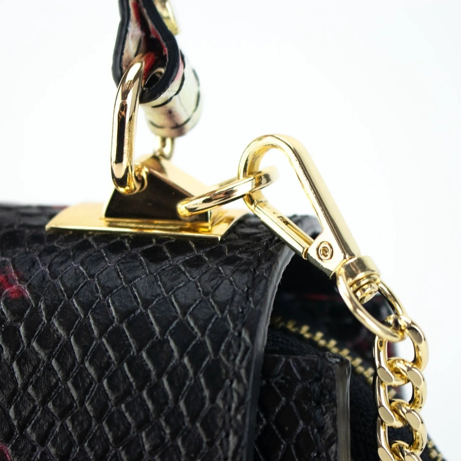Bolso de mano Piel Pregato Gekko Negro Rojo