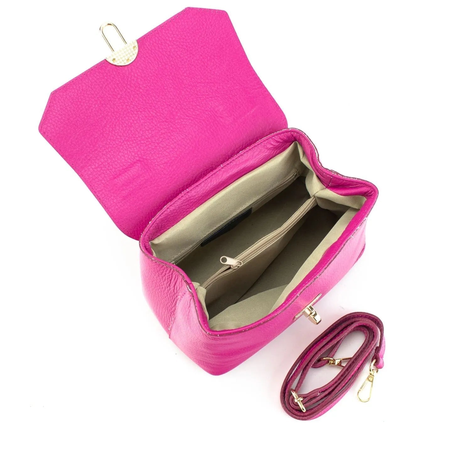 Un bolso muy completo y cómodo para lucir a diario, realizado en Piel 100% genuina vacuno italiana, este bolso está hecho en Italia con una excelente manufactura y calidad, un bolso precioso con asa de mano y cierre de solapa con un precioso broche metalizado. Con doble compartimento interior separado. Además incluye una cinta de bandolera ajustable a juego. Escoge el tuyo disponible en variedad de tonos ¡Te encantará!