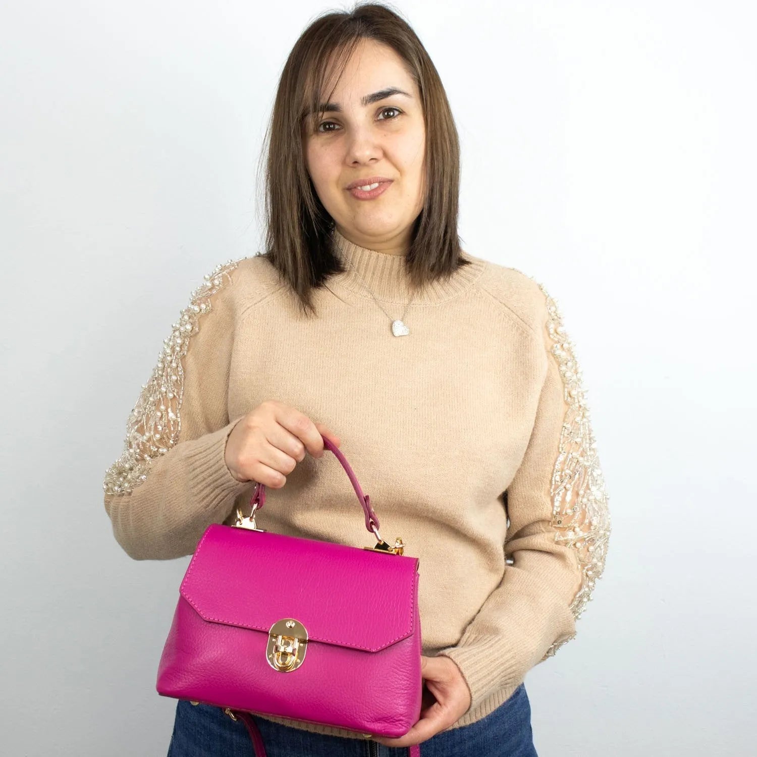 Bolso en Piel Pregato Carezza Fucsia