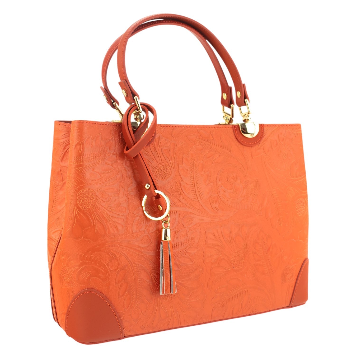 Bolso en piel Pregato Eleganza Grabado Naranja