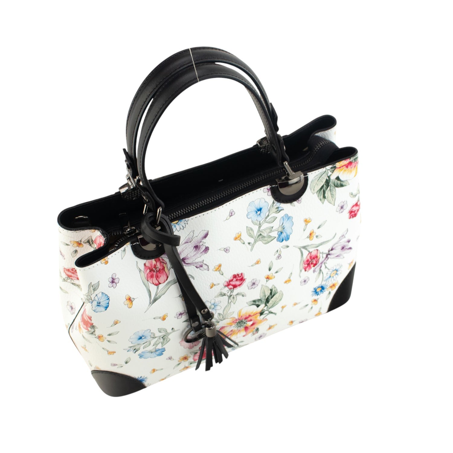 Bolso en piel Pregato Eleganza Negro Flores azules