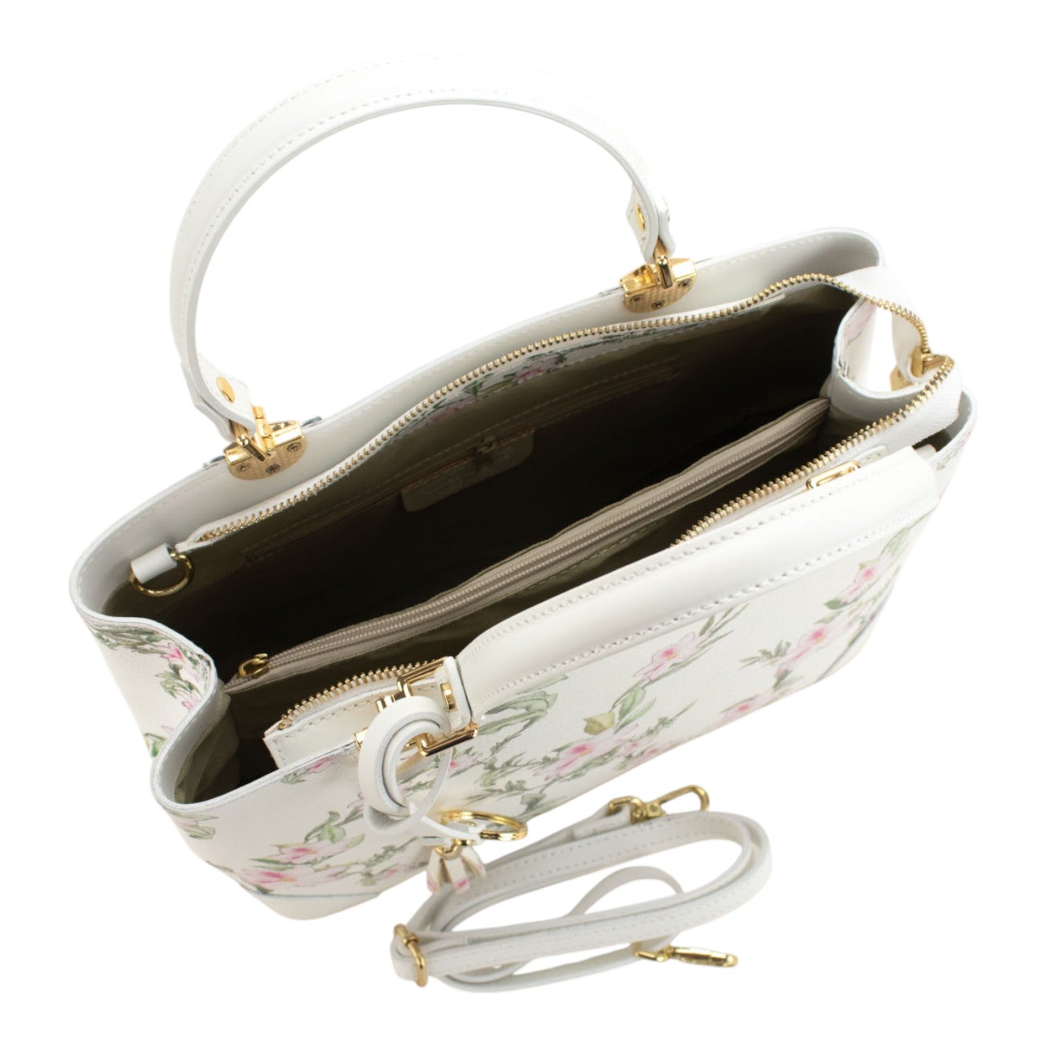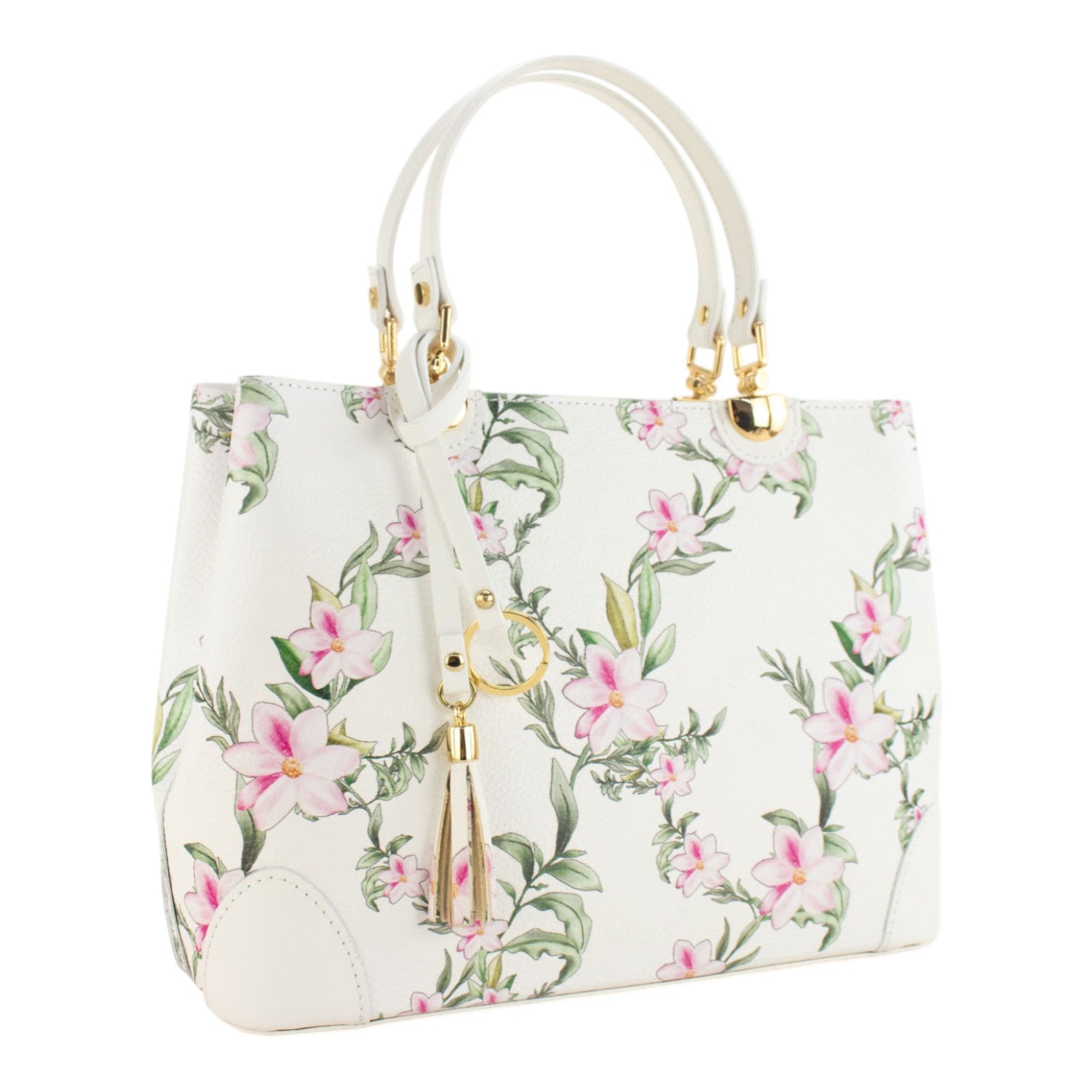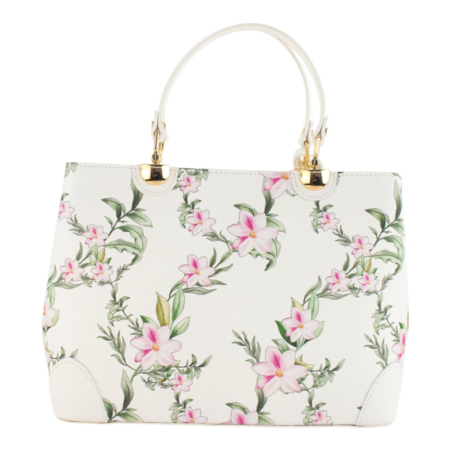 Bolso en piel Pregato Eleganza Sakura Rosas Blanco
