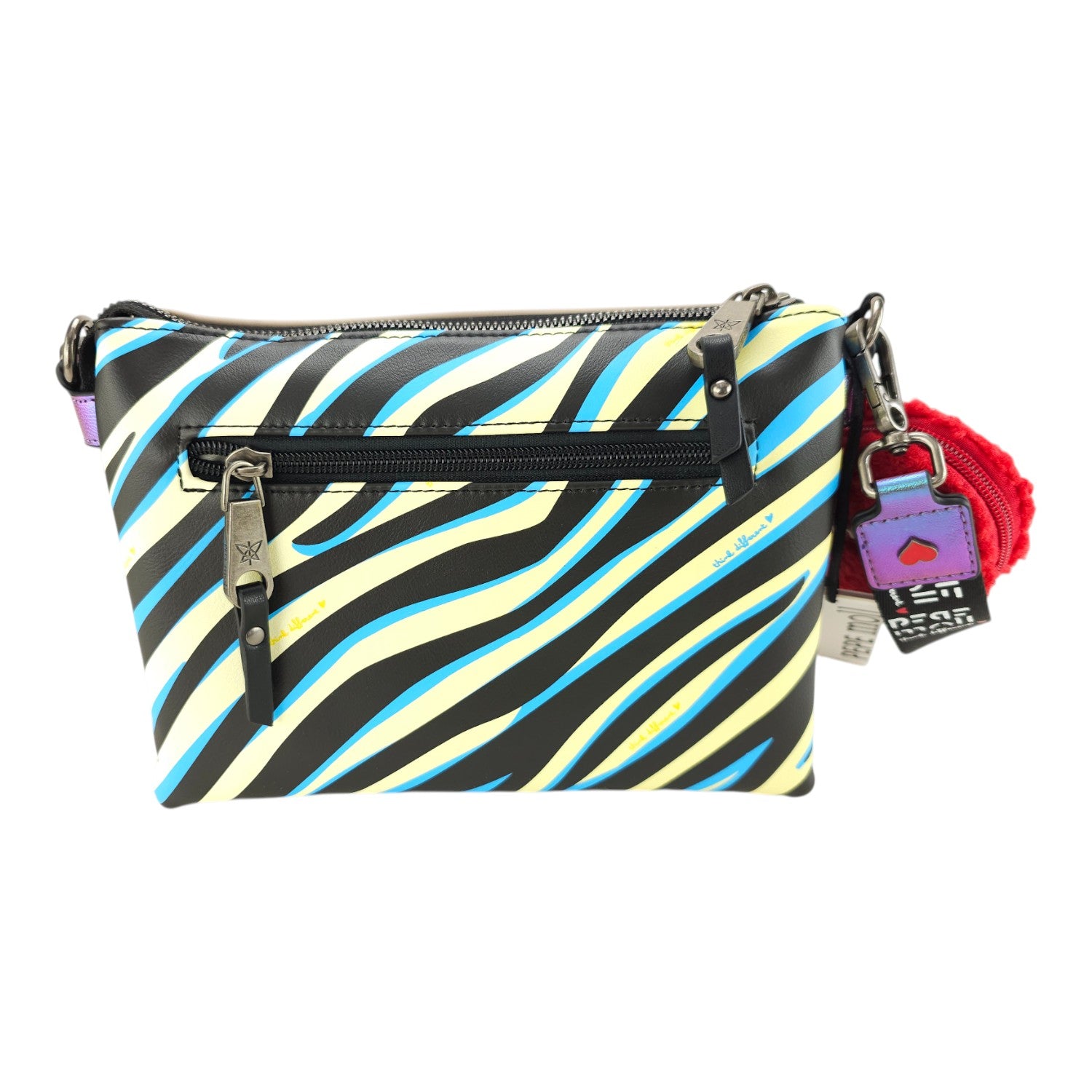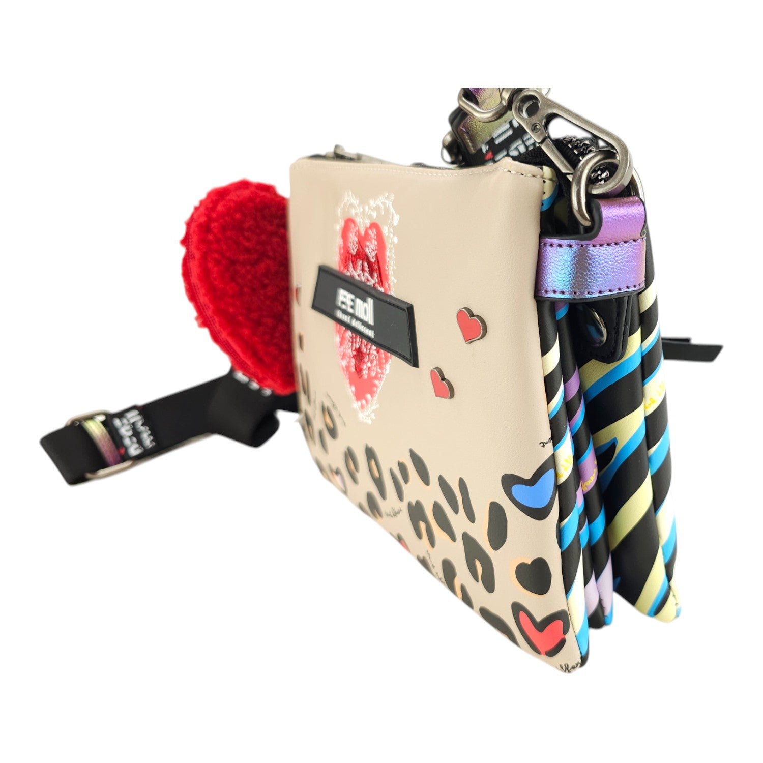 Original Bandolera Pepemoll Melodie, con compartimento principal con cierre de cremallera, cinta regulable a la altura deseada. Estampado en animal print combinado con apliques y colores que le dan un estilo rompedor.