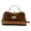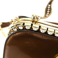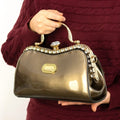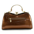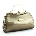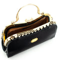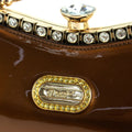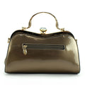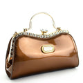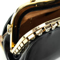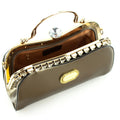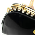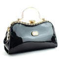 Uma bolsa estilo clutch super original pela qual você vai se apaixonar ainda mais do que tê-la em mãos. Uma bolsa espetacular com alça e alça de corrente metálica. Com um grande compartimento interior com fecho espetacular. Acabamento em tons lisos em couro envernizado brilhante e decorado com strass e apliques. Você vai adorar!
