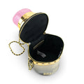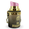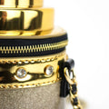Uma espetacular bolsa tiracolo em forma de batom que não passará despercebida. Com alça de ombro em corrente dourada. Possui formato cilíndrico e fechamento por zíper. Seu exterior é decorado em tons dourados e rosa. Você vai adorar!