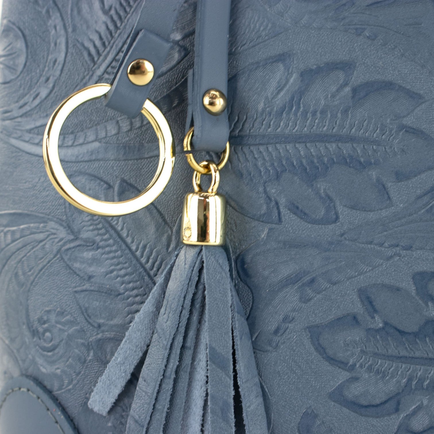 Bolso en piel Pregato Eleganza Grabado Azul Jeans