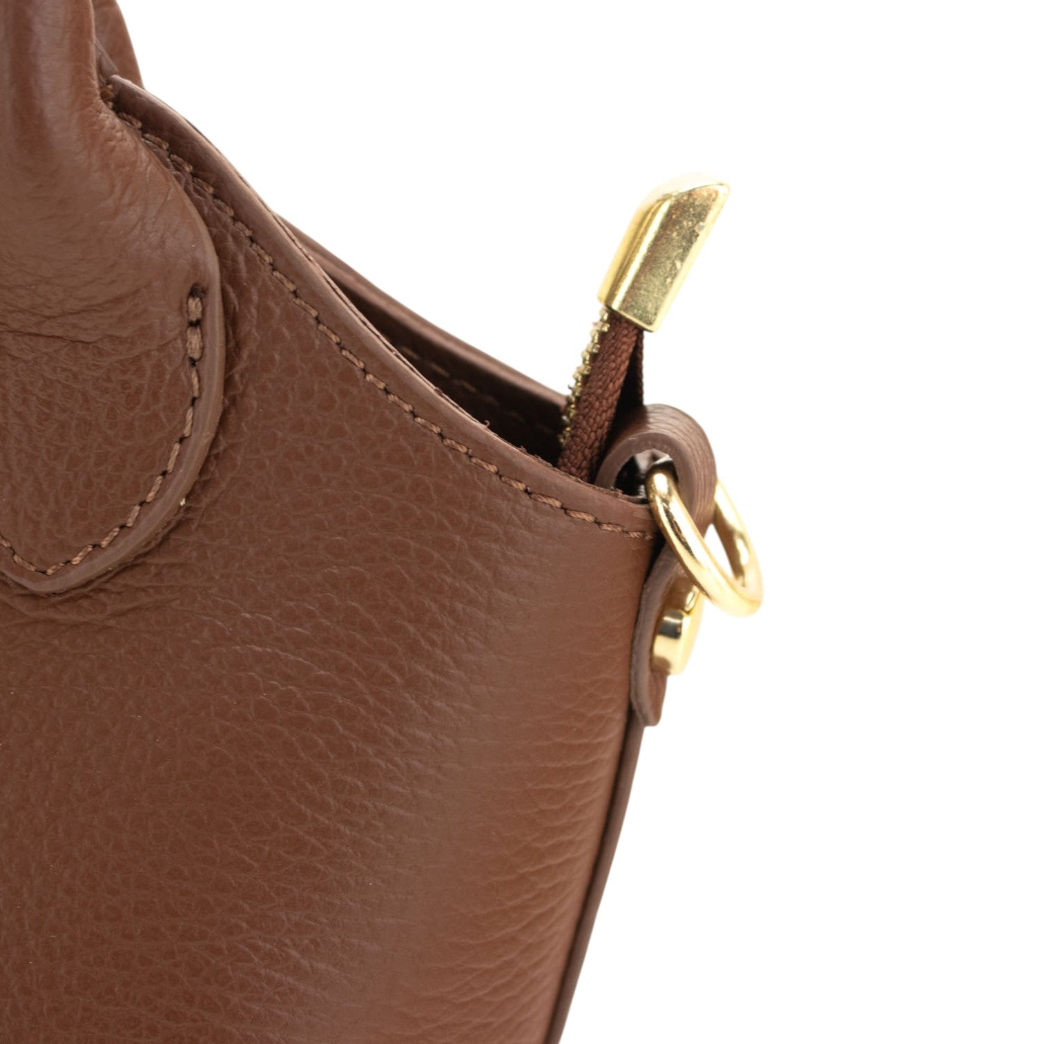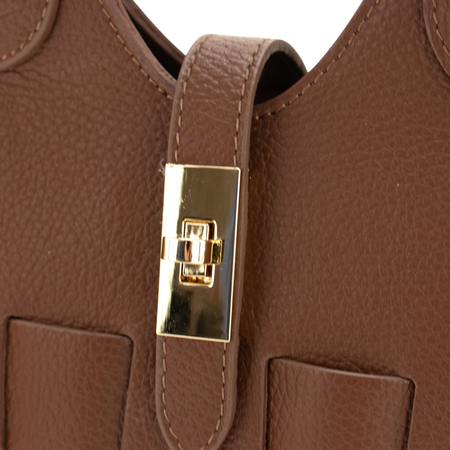 Descubre el encanto del Bolso en Piel Pregato Piccolo Tape Marrón, una pieza elegante y sofisticada que combina diseño clásico con funcionalidad para tu día a día. Confeccionado en piel de alta calidad, este bolso destaca por su textura suave y su cuidada manufactura, aportando un toque refinado a cualquier look.