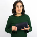 Uma carteira diária muito completa com fecho de correr e espaço para guardar cartões, notas e moedas. Acabamento em tons suaves com toque macio.