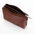 Carteira com três compartimentos em couro legítimo com acabamento muito macio, possui fechamento total com zíper e no interior três compartimentos separados ideais para cartões e moedas, forrados por dentro.